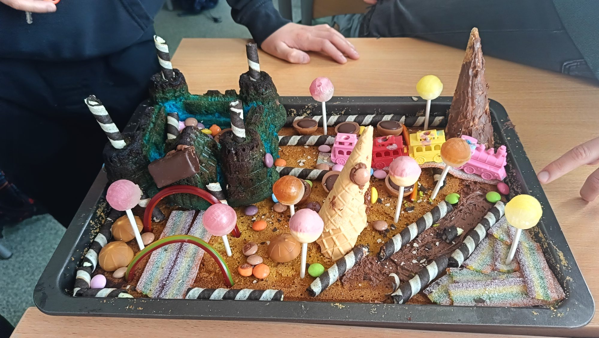 Omawianie lektury „ Charlie i fabryka czekolady” w klasie IV c zaowocowało zajęciami, podczas których uczniowie wykonywali projekt fabryki Willego Wonki. Było naprawdę słodko i wykonana fabryka wyglądała smakowicie. Po kilku dniach model został spałaszowany, ale zdążyliśmy go upamiętnić na pamiątkowej fotografii.