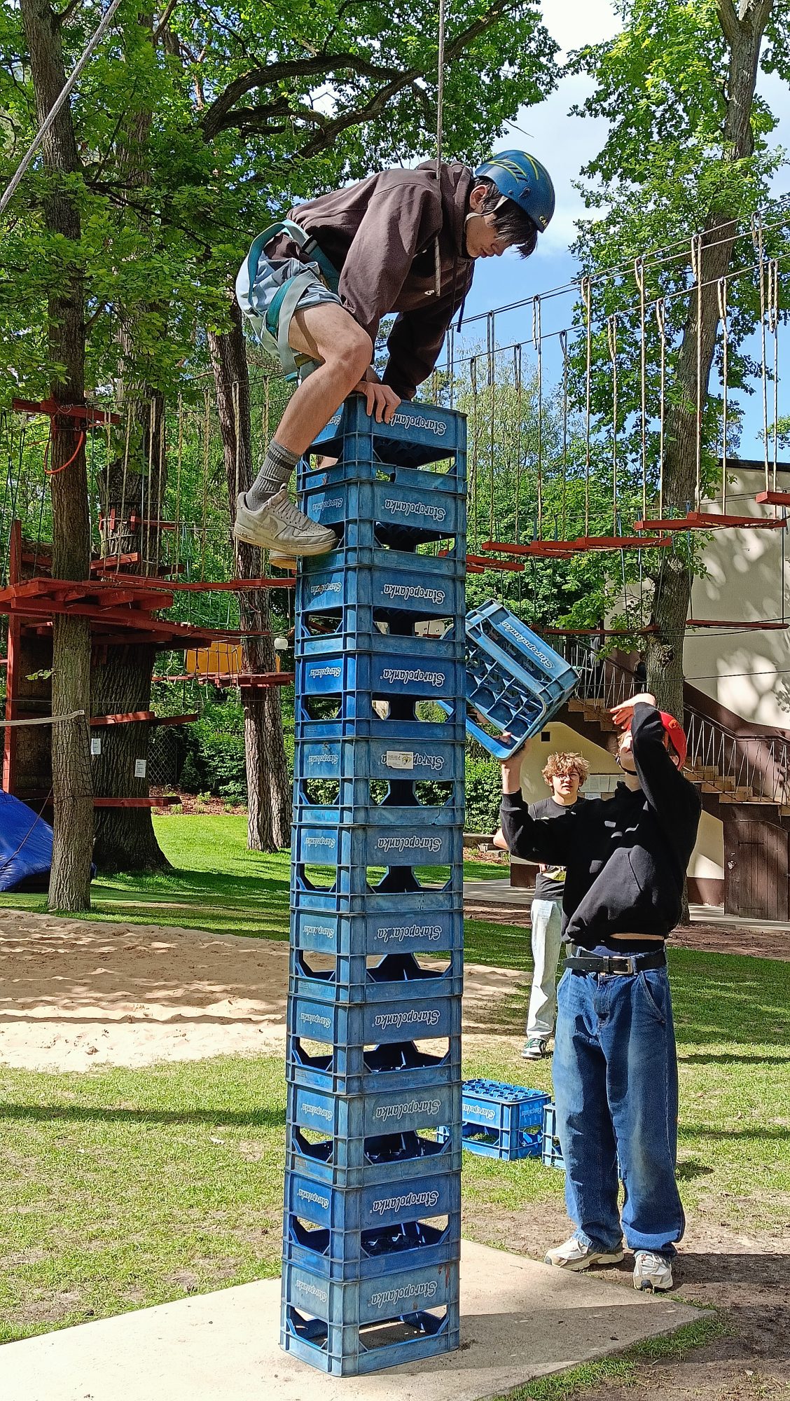 W dniach 21 – 23 maja uczniowie klasy VIII c udali się na Zieloną szkołę do Ośrodka „ Oko” w Sierakowie. Organizatorzy przygotowali dla nas wiele atrakcji – survival ( schronienie, ogień, kamuflaż), strzelanie do celu z wiatrówki i ASG, piramida ze skrzynek, sumo, park linowy.