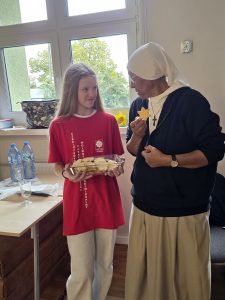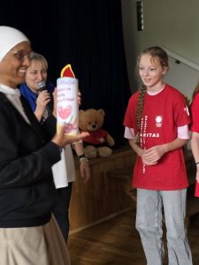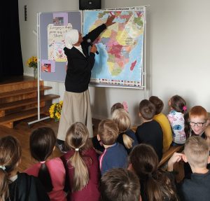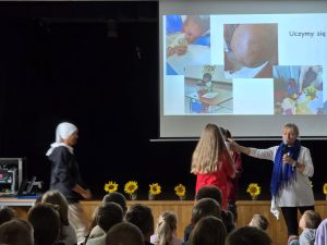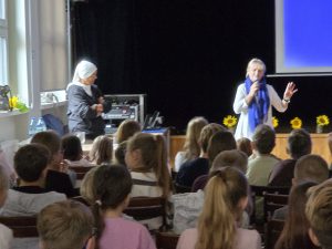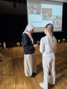 Dzieci mogły usłyszeć Jej opowieść o pracy na misji i poćwiczyć znajomość języka angielskiego. Siostra z pochodzenia jest Brytyjką. Podziękowała wszystkim za wsparcie jakie od nas otrzymała. Dwukrotnie przeprowadziliśmy akcje Światełko dla Etiopii. Uzyskane w ten sposób fundusze przeznaczyła na mleko dla swoich podopiecznych.