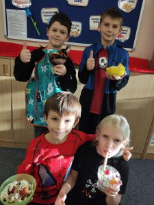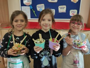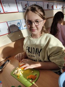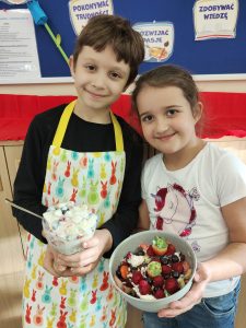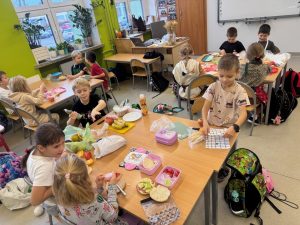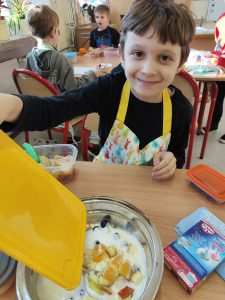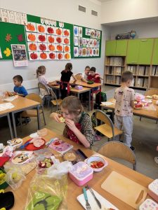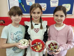 W naszej szkole święto to ma szczególny charakter. W klasach I–III każdego roku odbywa się prawdziwa, kolorowa uczta. Uczniowie, przy wsparciu wychowawców i często również rodziców, przygotowują zdrowe, smaczne i atrakcyjnie podane potrawy. Na stołach pojawiają się różnorodne sałatki, kanapki, owocowe kompozycje, pełnoziarniste przekąski oraz naturalne desery, które nie tylko cieszą oko, ale przede wszystkim promują dobre nawyki żywieniowe.