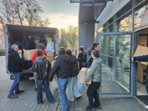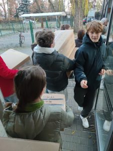 Na miejscu czekali już wychowawcy, ponieważ Podopieczni – jak na pilnych uczniów przystało – byli w szkole. Kiedy wrócą i zobaczą kartony piętrzące się niemal pod sufit, z pewnością będzie to dla nich miła niespodzianka.