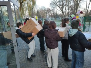 Już od wczesnego rana uczniowie klasy 8a stawili się w szkole, aby pomóc w pakowaniu darów dla zaprzyjaźnionego Domu Dziecka w Górze. Dzięki ich zaangażowaniu oraz ogromnej życzliwości dorosłych, udało się przygotować pokaźną przesyłkę, która z pewnością wywoła wiele uśmiechów.